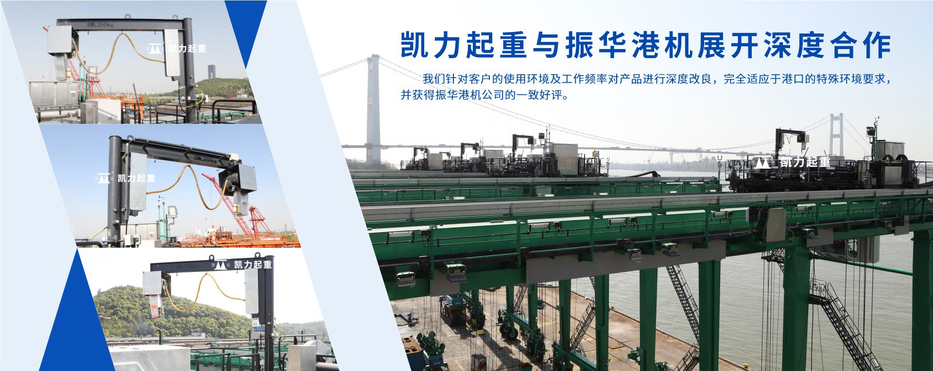 江陰市凱力起重電機有限公司專業生產JPKK型系列環鏈電動葫蘆;鋼絲繩電動葫蘆;(立柱式、定柱式、移動式、墻壁式、壁行式、曲臂式、雙臂式)旋臂起重機(懸臂起重機、懸臂吊、旋臂吊);JKBK柔性輕型組合式懸掛起重機(單軌、單梁、雙梁、伸縮梁、堆垛機等)的起重設備專業制造公司,產品廣泛應用于機械制造、冶金、電力、鐵路、水利、港口等多個行業。為滿足客戶需求,可設計生產制造各種任意參數的非標準起重設備。
